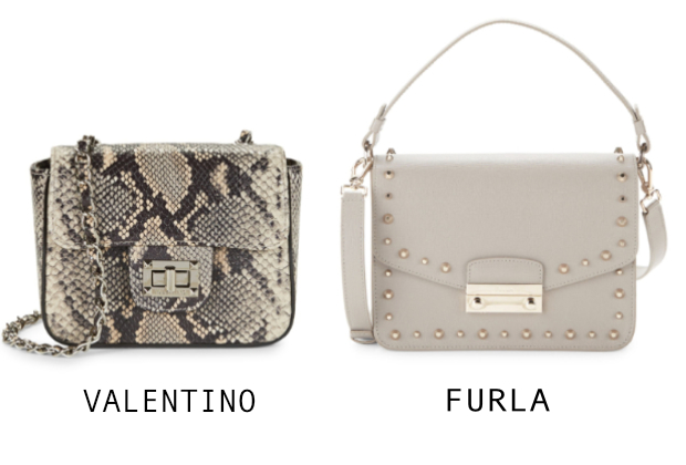 Valentinon pienet olkalaukut ja Furlan söpöyden löysin Saks Fift Avenuen alelaarista eli Saks Off 5th -nettikaupasta.