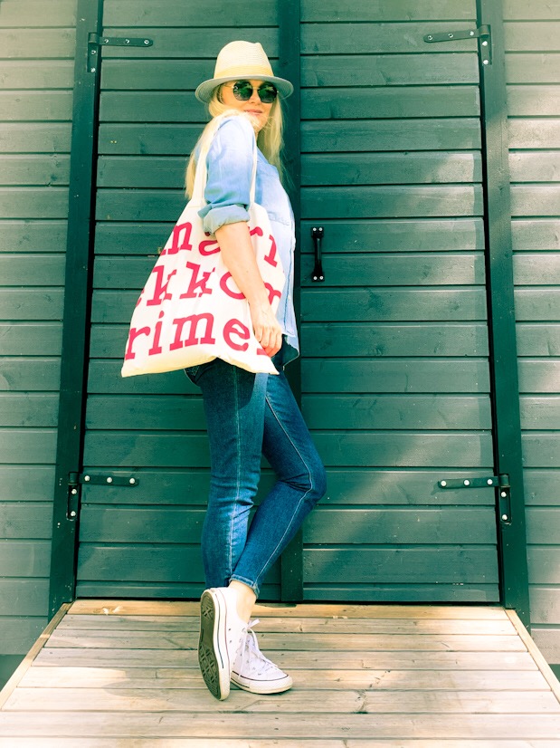 Greetings from our family’s summerhouse. Denim outfit is perfect for country life in Finnish countryside. Casual, durable yet comfortable denim outfit is easy to style. This is how I styled it to go grocery shopping.