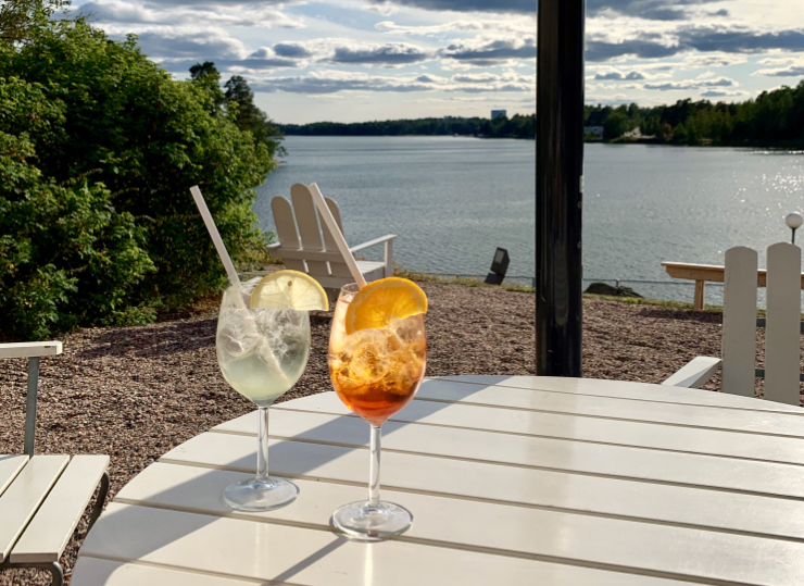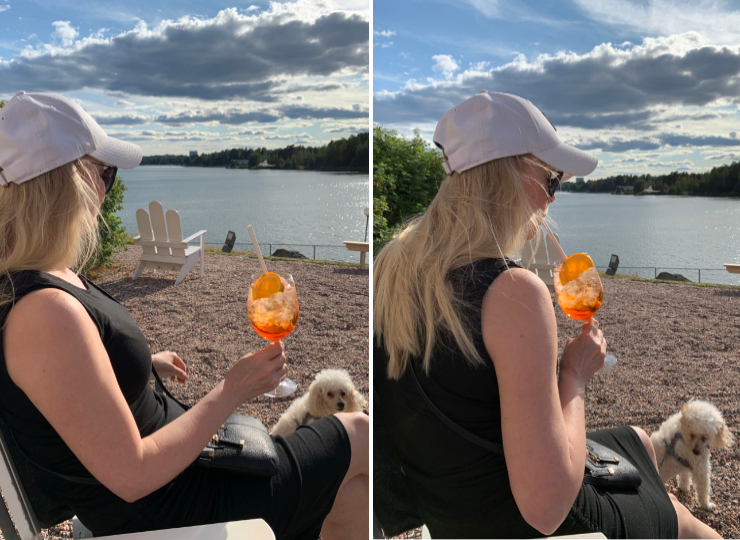 Ihana kesäpäivä ja kävelylenkki koiran kanssa merellisessä miljöössä. Kävelimme rauhalliseen Tamminiemeen ihailemaan maisemia ja nauttimaan raikkaat drinkit viihtyisässä Cafe Adjuntantissa. Koirakin sai oman vesikupin. On kiva saada näin hyvää palvelua, että kävelykaverikin huomioidaan pyytämättä.