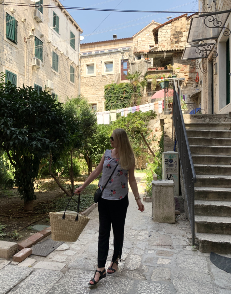 Päästyämme vanhan kaupungin porttien sisäpuolelle huomasimme miten muutkin turistit olivat lähteneet liikkeelle koronasulkujen jälkeen, muurien sisällä oli suorastaan ruuhkaa. Vanhan kaupungin muurit ovat aikanaan suojanneet palatsia, jonka roomalainen keisari Diocletianus rakennutti eläkepäiviään varten (jonne hän vetäytyi vuonna 305). Kyseinen keisari oli ihastunut paikkaan, jota Adrianmeren helmeksikin kutsutaan.