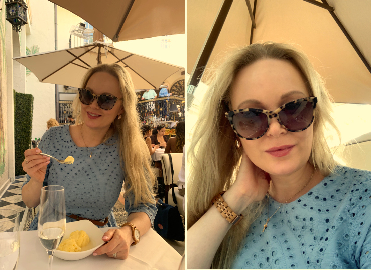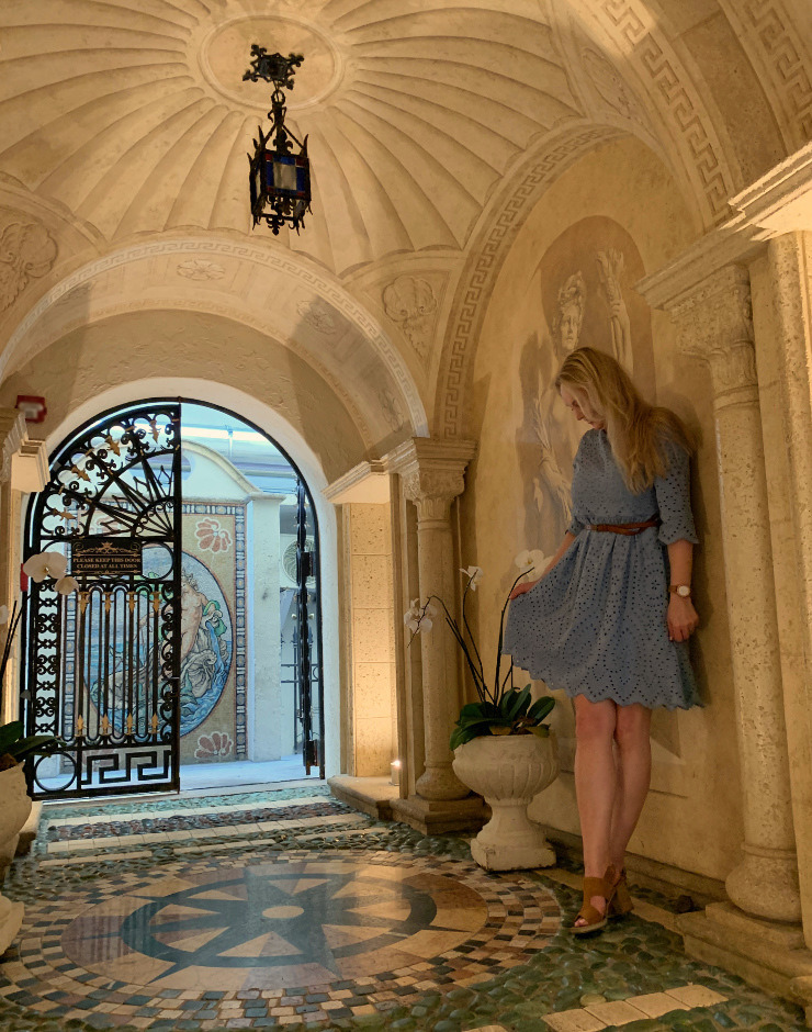 I recently had a lunch in the former Versace Mansion, Casa Casuarina. At the lunch, I wore a blue eyelet dress. And of course, like many other, I used the opportunity and took a few pictures while spending an hour or two there.