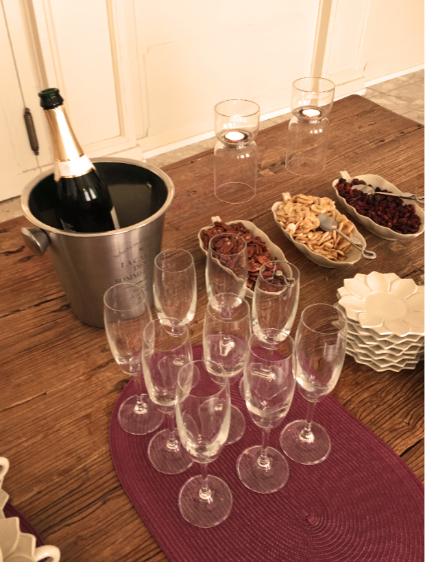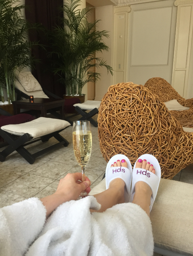 Pedikyyrin valmistuttua siirryin vielä takaisin loungeen rentoutumaan. Nautin kuivattuja hedelmiä ja pähkinöitä sekä lasillisen alkoholitonta kuohujuomaa, joka oli todella hyvää.