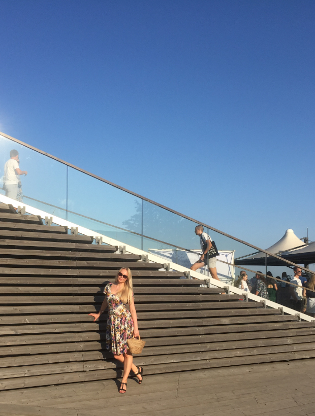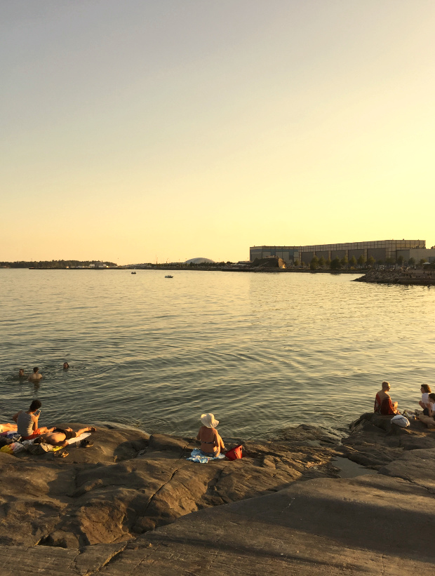 Nämä elokuiset kuvat on otettu Helsingin Töölössä, Sibelius-monumentilla. Ilta-aurinko paistoi kirkkaasti, kun kävelimme puistosta rantaan. Ilta-auringon säteet saivat meriveden näyttämään erittäin kutsuvalta, olisi tehnyt mieli uimaan. Tänä kesänä en ole uinut ollenkaan!