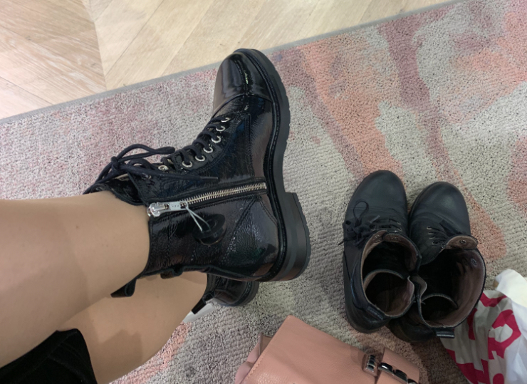 Toiset, joihin ihastuin, ovat Pavementin kiiltonahkaiset mustat nilkkurit, joissa myöskin on metallisia yksityiskohtia. Harmiksi Pavement-nilkkureissa ei ollut enää omaa kokoani jäljellä, kun kävin toistamiseen katsomassa. Tällaiset kiiltävät kyllä haluaisin vielä lisäksi, mutta pärjään kyllä ilmankin. Ehkä…