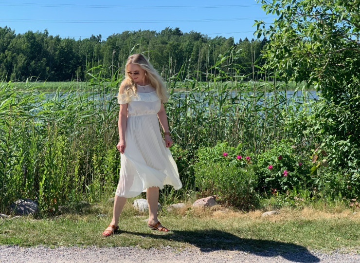 CUCO:n valikoimasta löytämäni kukkamekon kun yhdistäisi mustien nilkkureiden sijaan käärmekuosinilkkureihin, niin asu muistuttaisi tunnelmaltaan Annan asua, vaikka mekon kukkakuosi on pienempi ja erisävyinen.